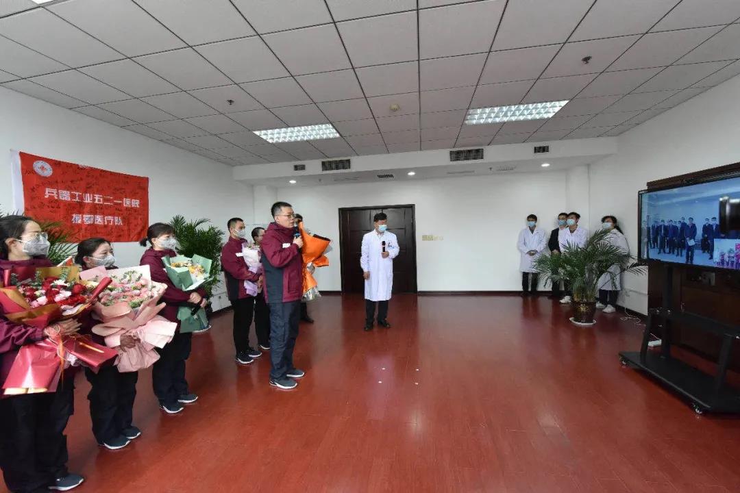 置業(yè)集團(tuán)521醫(yī)院2月2日、2月15日分兩批派出杭博、郭苓、緱豪兵、呂戈、侯永生、曹利娜、楊嬌等7名醫(yī)護(hù)人員馳援湖北抗疫一線。4月21日上午,返程隊(duì)員全部結(jié)束休整平安回院。焦開河專程視頻連線521醫(yī)院7名援鄂醫(yī)療隊(duì)隊(duì)員,代表集團(tuán)公司黨組對(duì)援鄂醫(yī)療隊(duì)隊(duì)員致以崇高的敬意和誠(chéng)摯的慰問(wèn)。