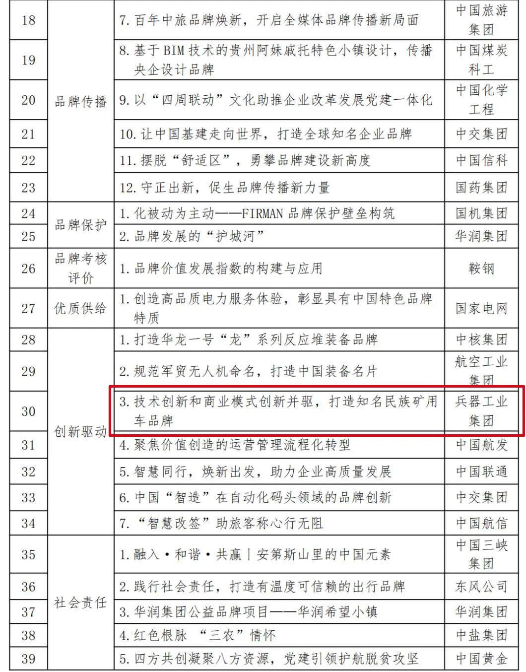 5月10日,由國(guó)家發(fā)展改革委等7部門(mén)和上海市政府共同主辦,國(guó)務(wù)院國(guó)資委特別支持的2021年中國(guó)品牌日活動(dòng)在上海舉辦。 活動(dòng)現(xiàn)場(chǎng),國(guó)資委指導(dǎo)舉辦了中國(guó)企業(yè)品牌建設(shè)分論壇,會(huì)上發(fā)布了《2020年度中央企業(yè)品牌建設(shè)發(fā)展報(bào)告》、2020年度100個(gè)國(guó)有企業(yè)品牌建設(shè)典型案例和100個(gè)優(yōu)秀品牌故事。中國(guó)兵器工業(yè)集團(tuán)北重集團(tuán)的“技術(shù)創(chuàng)新和商業(yè)模式創(chuàng)新并驅(qū),打造知名民族礦用車品牌”入選2020年度100個(gè)國(guó)有企業(yè)品牌建設(shè)典型案例,中國(guó)兵器工業(yè)集團(tuán)北方公司的微電影《大山里升起的希望》入選2020年度100個(gè)優(yōu)秀品牌故事。 《2020年度中央企業(yè)品牌建設(shè)發(fā)展報(bào)告》分析了當(dāng)前中央企業(yè)加強(qiáng)品牌建設(shè)的形勢(shì)要求,從戰(zhàn)略引領(lǐng)、專業(yè)運(yùn)營(yíng)、支撐保障、組織管控、全球推廣5個(gè)方面總結(jié)了中央企業(yè)年度品牌建設(shè)進(jìn)展。 2020年度100個(gè)國(guó)有企業(yè)品牌建設(shè)典型案例和100個(gè)優(yōu)秀品牌故事,匯集企業(yè)優(yōu)秀經(jīng)驗(yàn)做法,豐富國(guó)企品牌資源池,促進(jìn)企業(yè)相互學(xué)習(xí)借鑒,加快提高品牌管理專業(yè)化水平。 2020年度100個(gè)國(guó)有企業(yè) 品牌建設(shè)典型案例 來(lái)源/國(guó)資小新 |