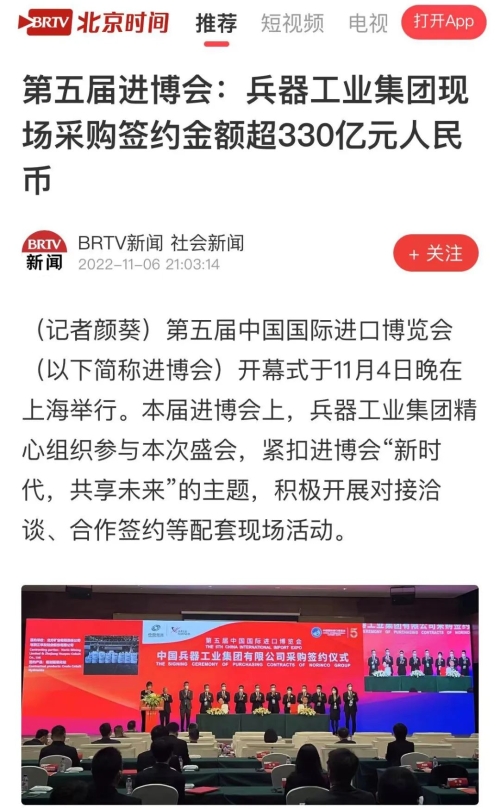 兵器工業(yè)集團(tuán)第五屆進(jìn)博會成果受到廣泛關(guān)注 |