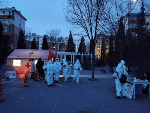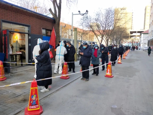 當(dāng)前,內(nèi)蒙古自治區(qū)疫情防控形勢依然嚴(yán)峻,包頭市中風(fēng)險地區(qū)已達(dá)7個。面對疫情,中國兵器工業(yè)集團(tuán)有限公司駐包頭單位積極行動,支援當(dāng)?shù)匾咔榉揽?,共筑安全防線。 凌晨集結(jié),投身核酸檢測工作 來自一機(jī)集團(tuán)、北重集團(tuán)、材料院52所包頭事業(yè)部的共計(jì)500余名志愿者密切配合包頭市防疫部門、街道社區(qū)進(jìn)行全員核酸檢測,同時做好信息登記、維護(hù)秩序、宣傳政策等工作,確保核酸檢測全覆蓋。2月20日凌晨,在零下20度的寒風(fēng)中,志愿者全部在支援地集結(jié)到位,做好核酸檢測前的相關(guān)準(zhǔn)備。 一機(jī)集團(tuán)黨員突擊隊(duì) 志愿者們搭建臨時帳篷,用圍擋封控家屬區(qū),配合醫(yī)護(hù)人員組織居民排隊(duì),有序進(jìn)行核酸檢測。檢測工作開始后,志愿者們用溫暖的話語安撫居民們的情緒,引導(dǎo)居民有序入場,檢測居民體溫,登記核對信息,轉(zhuǎn)運(yùn)檢測樣本。為了盡可能提高檢測工作效率,志愿者在各條核酸檢測通道指導(dǎo)群眾掃碼登記,一對一幫助老人、兒童等不便使用智能手機(jī)的群眾解決困難,使其能順利進(jìn)行核酸檢測。 逐戶上門,確保應(yīng)檢盡檢 為確保所支援地區(qū)完成全員核酸檢測工作,志愿者自愿組隊(duì),挨家挨戶上門通知,進(jìn)行人員核對,對于處在隔離期的居民以及行動不便的老人、兒童采取了入戶核酸檢測。