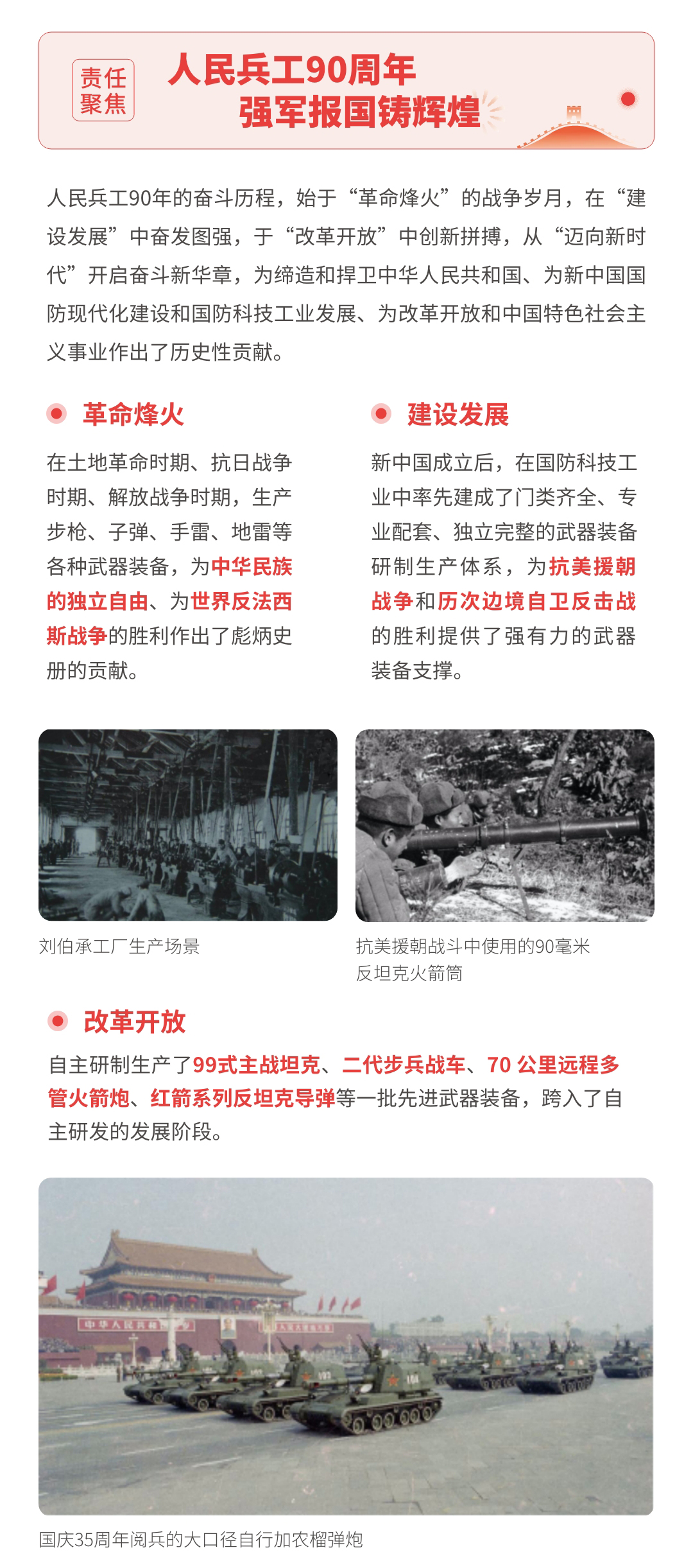 近日,兵器工業(yè)集團正式發(fā)布第十三份年度社會責任報告——《中國兵器工業(yè)集團有限公司2021年社會責任報告》,以“用心守護和平、用力爭創(chuàng)一流、用情溫暖社會”為主題,從恪守強軍首責、服務(wù)經(jīng)濟建設(shè)、共創(chuàng)美好生活三個維度,向社會全面披露2021年度履責實踐和履責業(yè)績?!秷蟾妗愤B續(xù)第三年獲得中國企業(yè)社會責任報告評級專家委員會“五星佳”評級,兵器工業(yè)集團成為軍工行業(yè)唯一連續(xù)11年獲得五星及五星佳最高評級的企業(yè)。 一圖解碼兵器工業(yè)的“責任力量” |