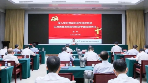 為深入學(xué)習(xí)貫徹習(xí)近平新時代中國特色社會主義思想,全面貫徹落實黨的二十大精神,推動全集團主題教育走深走實,根據(jù)中國兵器工業(yè)集團有限公司黨組主題教育專題黨課總體安排,6月21日,集團公司黨組副書記、董事周艦,黨組成員、總會計師張華分別以《學(xué)思想強黨性重實踐建新功,深入貫徹落實新時代黨的組織路線,為建設(shè)具有全球競爭力的世界一流集團公司提供堅強組織保障》和《深入學(xué)習(xí)貫徹習(xí)近平經(jīng)濟思想,以高質(zhì)量發(fā)展加快推進中國式現(xiàn)代化》為題,向全系統(tǒng)講授主題教育專題黨課。中央第四十三指導(dǎo)組成員李軍波到會指導(dǎo)。