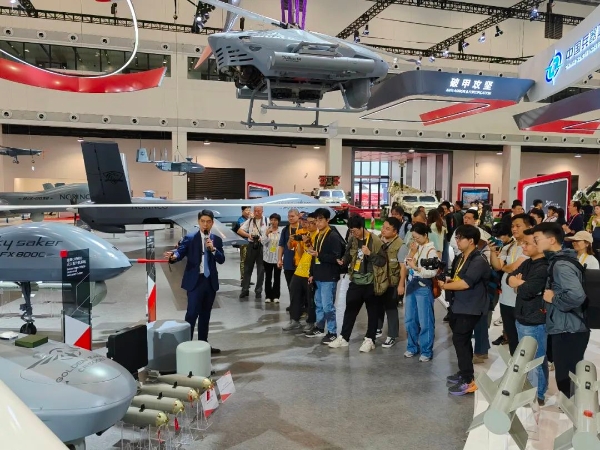 本屆航展,兵器工業(yè)集團(tuán)著重展示數(shù)智賦能軍貿(mào)合成旅作戰(zhàn)體系。“探館”現(xiàn)場,新聞發(fā)言人向記者團(tuán)介紹了本屆航展集團(tuán)公司參展亮點(diǎn)、明星產(chǎn)品和技術(shù)發(fā)展成果,并對(duì)VT5-U輕型坦克、VU-T10無人平臺(tái)、SR5多管火箭炮、金雕CR500B無人直升機(jī)系統(tǒng)、指揮控制中心等參展裝備和技術(shù)作了重點(diǎn)介紹,媒體記者進(jìn)一步了解了裝備的性能和特點(diǎn)。在無人火力展區(qū),記者團(tuán)還走進(jìn)仿真訓(xùn)練體驗(yàn)區(qū),親身“使用”單兵武器,體驗(yàn)裝備性能。